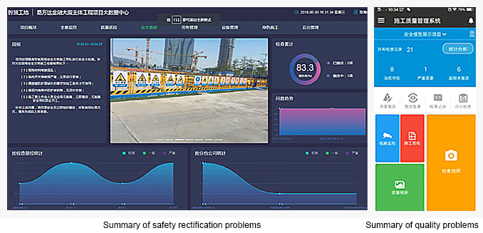 The management personnel shall timely generate a rectification notice for the site problems through the mobile app and issue it to the responsible person. After the site rectification is completed, they can take photos and reply to the management personnel. Relevant quality / safety rectification data can be integrated and displayed on the smart site platform.